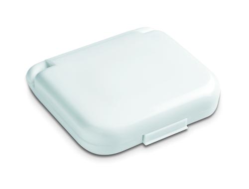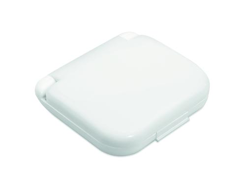 Compact sewing kit with essential sewing accessories in a plastic box.