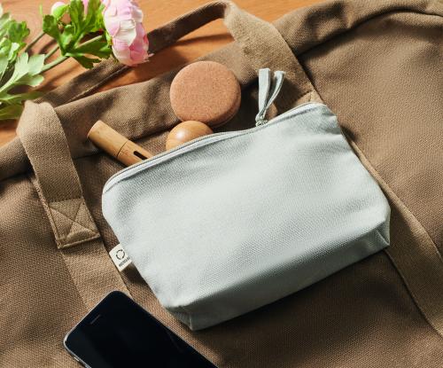 Cosmetic and or accessories bag in recycled fabric (70% recycled cotton and 30% RPET polyester) with matching zipper puller. 320 gr/m².