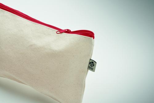Cosmetic bag in organic cotton with coloured zipper. 340 gr/m².
