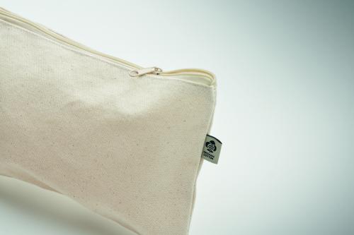 Cosmetic bag in organic cotton with coloured zipper. 340 gr/m².