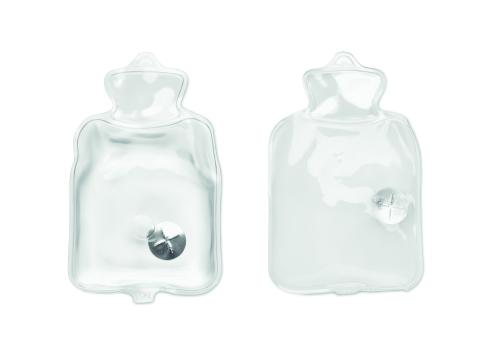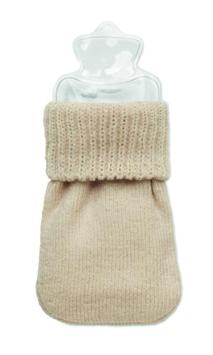 Hand warmer in knitted polyester. Includes instant heat pad in PVC to be activated by pressing the metal plate inside. Reusable by placing pad in hot water.