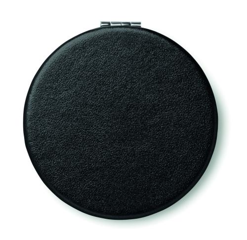 Double mirror with magnetic closure in round shape with PU cover.