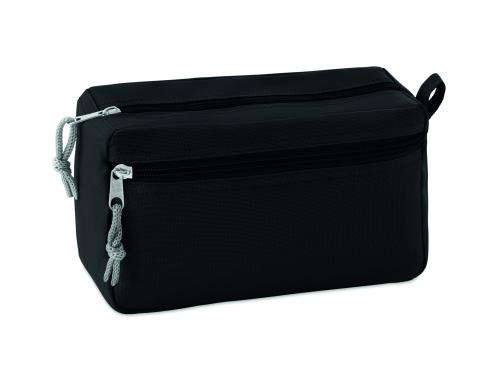 Cosmetic bag with double zipper. 600D polyester with PPE backing.