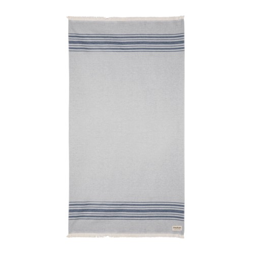 This lightweight, highly absorbent, sand-resistant, and quick dry towel is one of the best sustainable towels out there. Hammam towels are multifunctional: you can also use it as a picnic, baby blanket or as a yoga, beach, and gym towel. Even as a table cloth. Best of all, the thin material makes it ultra-portable and easy to toss in your beach bag, suitcase or over your shoulder. This towel contains 12% recycled cotton and is super soft and silky to the touch. With AWARE™ tracer that validates the genuine use of recycled cotton. 2% of proceeds of each Impact product sold will be donated to Water.org. Made in Portugal.