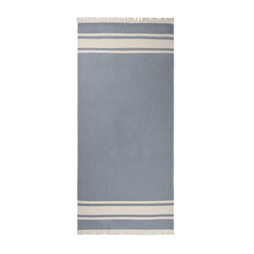 Hammam towel designed with two different types of texture, one side in terry and the other side in plain weave. The two-sided design makes this towel the ultimate companion when you're at the beach, by the pool, or when on an adventure outdoors. It has an excellent absorbency and dries up quickly. The towel is crafted from 75% cotton and 25% polyester and has a thickness of 360 gsm. Measurements: 180x80cm, fringes in 5cm excluded. OEKO-TEX® STANDARD 100. 09.HIN.68091. Hohenstein HTTI.