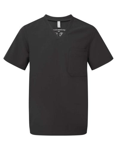 - V-neck style with left chest pocket