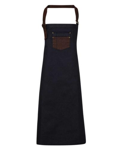 'DIVISION' WAXED LOOK DENIM BIB APRON WITH FAUX LEATHER