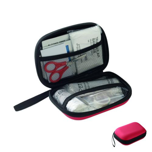 Elsősegély-készlet RPET tartóban, piros