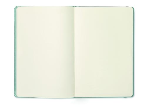 A5 notebook with hard PU cover. Casebound. 192 plain recycled paper pages (96 sheets). Matching elastic closure strap and ribbon page-marker. FSC®-certified | FSC MIX CREDIT, P7.1, FSC-C213206