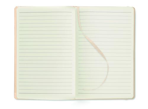 A5 notebook with hard PU cover. Casebound. 192 lined recycled paper pages (96 sheets). Matching elastic closure strap and ribbon page-marker. FSC®-certified | FSC MIX CREDIT, P7.1, FSC-C213206