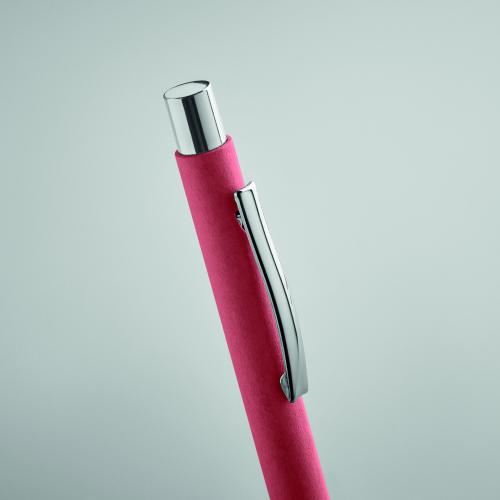 Push button ball pen in recycled paper and metal clip and plastic fittings. Blue ink. FSC®-certified | FSC RECYCLED, P9, FSC-C213206