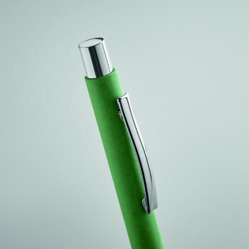 Push button ball pen in recycled paper and metal clip and plastic fittings. Blue ink. FSC®-certified | FSC RECYCLED, P9, FSC-C213206