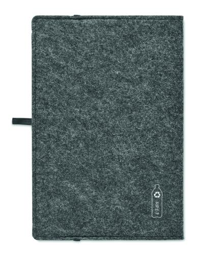 A5 notebook with RPET felt cover. 160 recycled paper lined pages (80 sheets / 70 gr/m²). Elasticated pen loop.