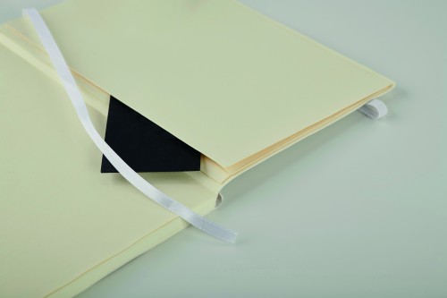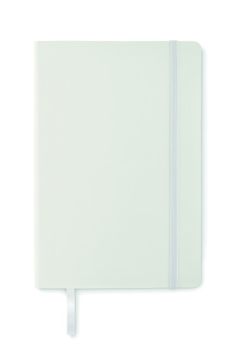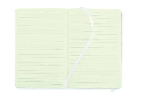 A5 notebook with soft recycled PU (81% recycled polyester and 19% PU) cover. Casebound. 160 lined pages (80 sheets recycle papers). Matching elastic closure strap and ribbon bookmark. Expandable inner pocket in the back. FSC®-certified | FSC MIX CREDIT, P7.1, FSC-C213206