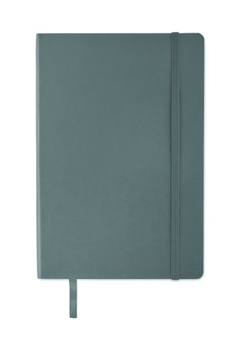 A5 notebook with soft recycled PU (81% recycled polyester and 19% PU) cover. Casebound. 160 lined pages (80 sheets recycle papers). Matching elastic closure strap and ribbon bookmark. Expandable inner pocket in the back. FSC®-certified | FSC MIX CREDIT, P7.1, FSC-C213206