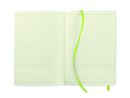 A5 notebook with soft recycled PU (81% recycled polyester and 19% PU) cover. Casebound. 160 lined pages (80 sheets recycle papers). Matching elastic closure strap and ribbon bookmark. Expandable inner pocket in the back. FSC®-certified | FSC MIX CREDIT, P7.1, FSC-C213206