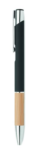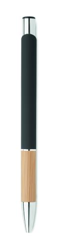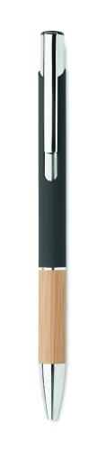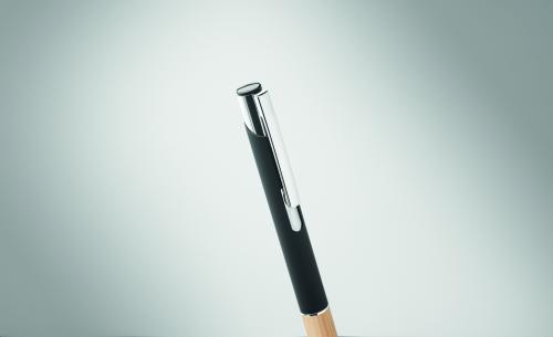 Push button pen in aluminium with bamboo grip. Blue ink.