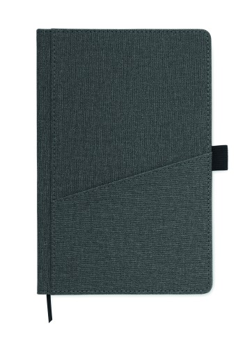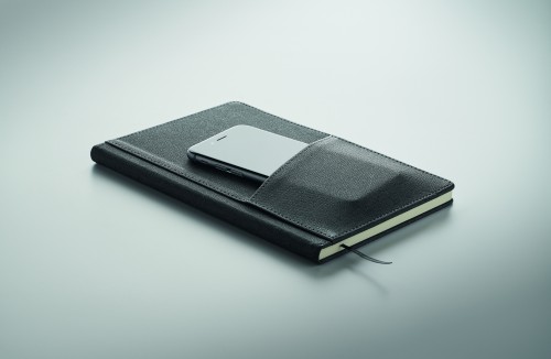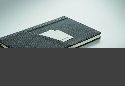 A5 notebook with PU hard cover with front phone pocket. Case bound. 160 recycled paper lined pages (80 sheets). Matching ribbon bookmark. FSC®-certified | FSC MIX CREDIT, P7.1, FSC-C213206