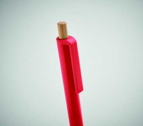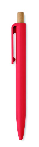 Ball pen in recycled ABS with bamboo push button. Blue ink.