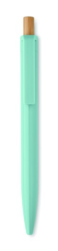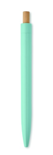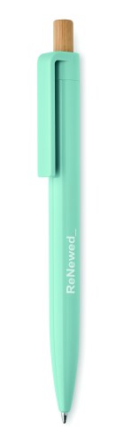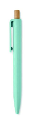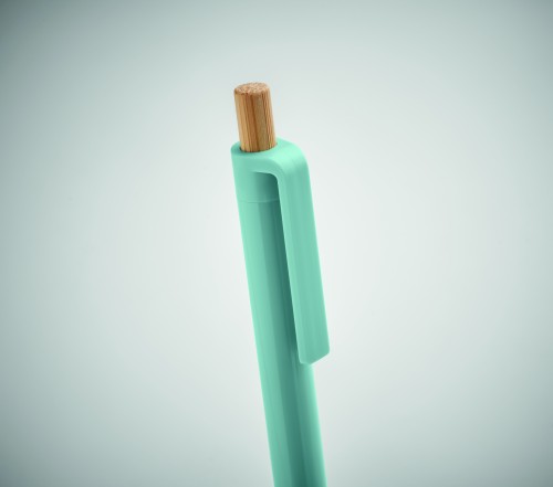 Ball pen in recycled ABS with bamboo push button. Blue ink.