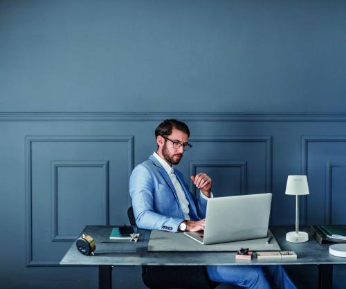 Retractable and rechargeable USB table lamp in ABS. Includes 12 LED lights with adjustable light intensity and stepless dimming. Built-in battery: 1200 mAh (6hr working time after fully charged). Including USB Type-A to Type-C charging cable.