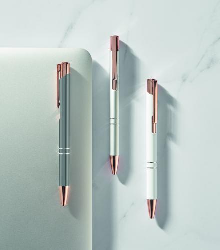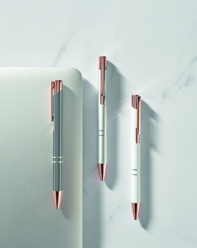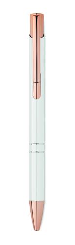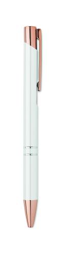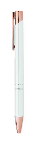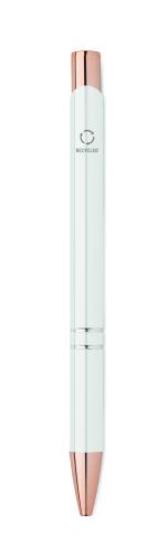 Push button pen in recycled aluminium. Blue ink.