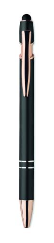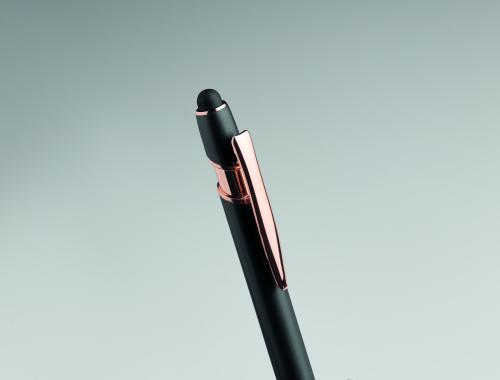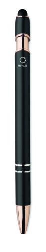 Recycled aluminium stylus push ball pen with rose gold details. Blue ink.
