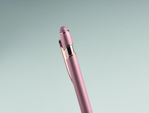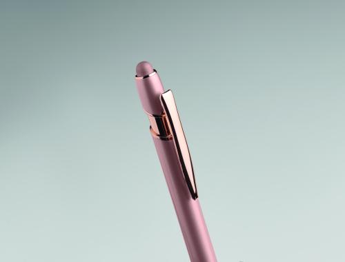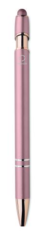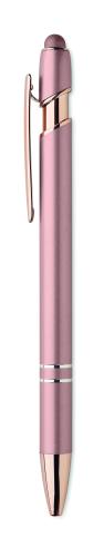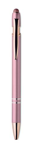 Recycled aluminium stylus push ball pen with rose gold details. Blue ink.