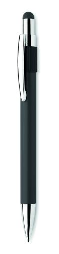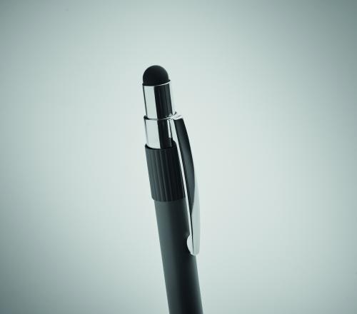 Stylus push ball spinner pen in recycled aluminium. Blue ink.