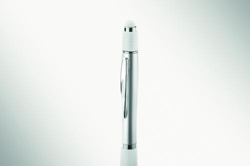 Stylus twist action spinner ball pen in recycled ABS. Blue ink.