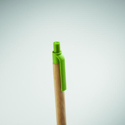 Push button ball pen with bamboo barrel and wheat straw (50%) and ABS plastic (50%) fittings. Blue ink. FSC 100% | N5.7 | FSC-C213206