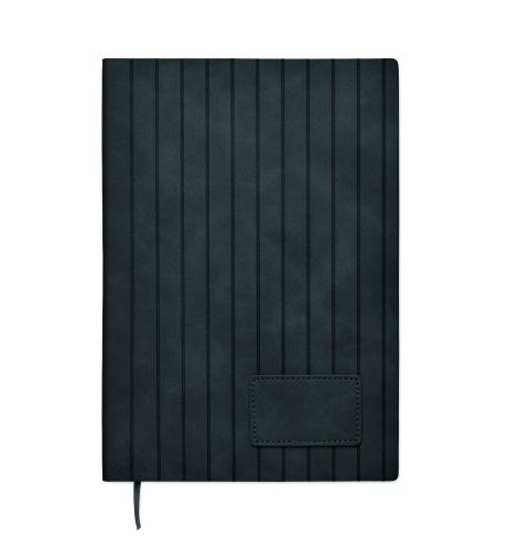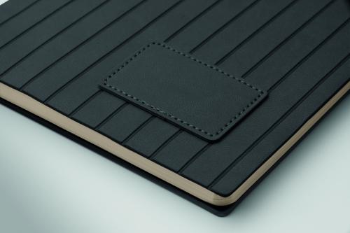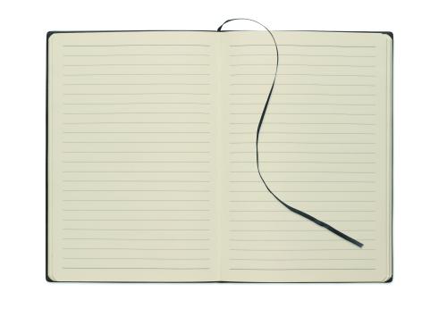 A5 notebook with soft smokey PU ribbed cover in 40% recycled post consumer and 60% PU with plain PU patch. 160 lined pages, 70gsm recycled paper (80 sheets). Matching colour polyester ribbon page marker. FSC®- certified | FSC MIX CREDIT, P7.1, FSC-C213206