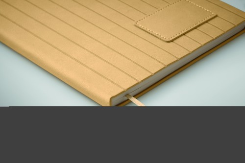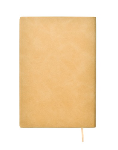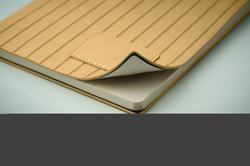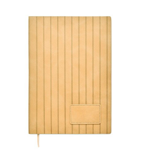A5 notebook with soft smokey PU ribbed cover in 40% recycled post consumer and 60% PU with plain PU patch. 160 lined pages, 70gsm recycled paper (80 sheets). Matching colour polyester ribbon page marker. FSC®- certified | FSC MIX CREDIT, P7.1, FSC-C213206