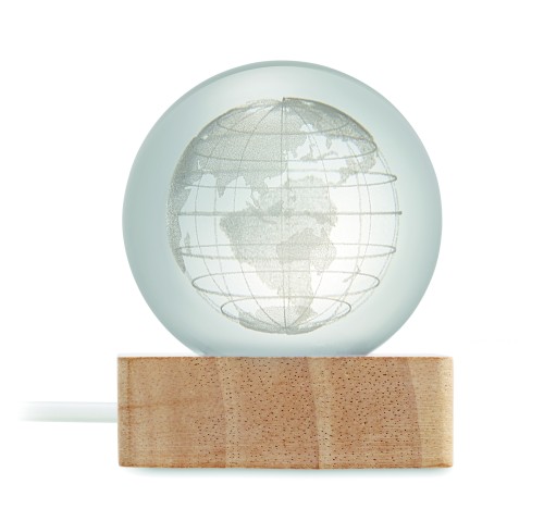 Glass globe ball with LED light (100 lumens) on a rubber wood base. Includes a USB charging cable (90 cm). FSC 100% | W18.8 | FSC-C213206