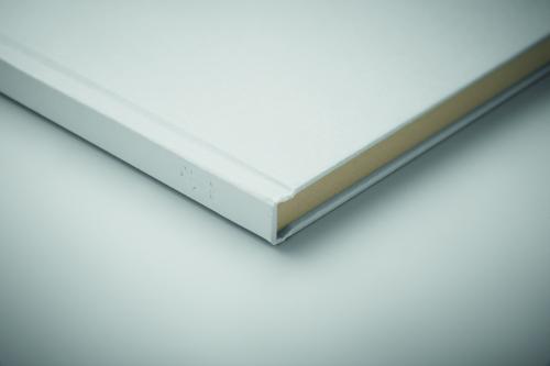A5 notebook with hard cover and 160 lined paper pages (80 sheets) in PLA sugarcane (65% Sugarcane fibre/35% paper). Casebound.