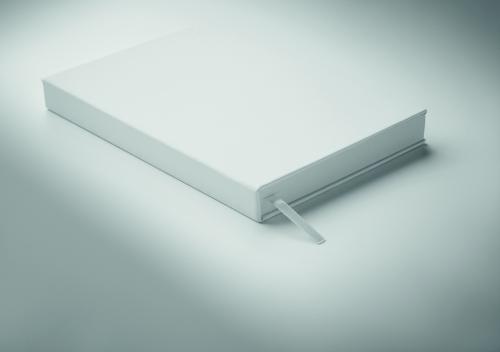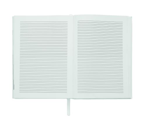 A5 daily diary notebook in 60% recycled post consumer polyester and 40% PU cover. 416 universal pages in 70gsm recycled paper (208 sheets). With matching colour polyester ribbon page marker.