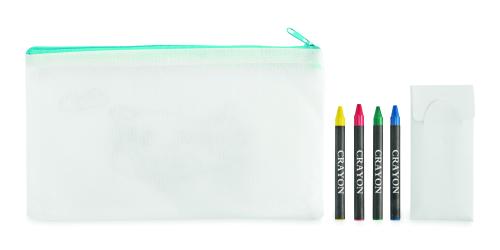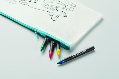 Non woven pencil case including 4 crayons.
