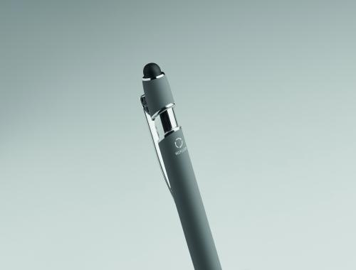 Recycled aluminium stylus push ball pen. Blue ink.