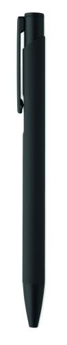 Push-type pen made of recycled aluminium with iron clip and colour rubberised barrel. Blue ink.