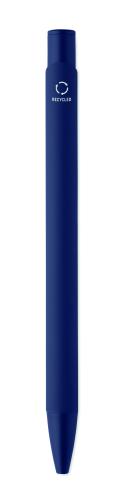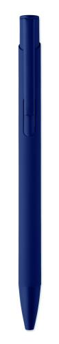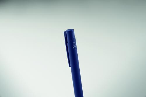 Push-type pen made of recycled aluminium with iron clip and colour rubberised barrel. Blue ink.