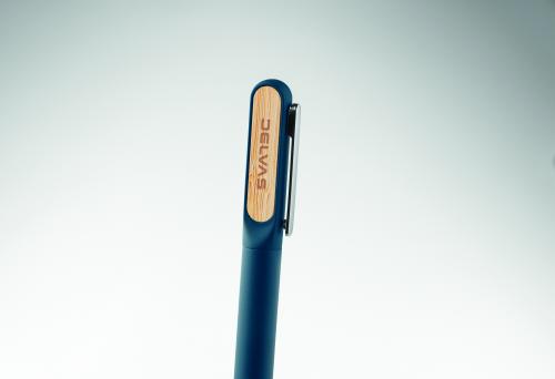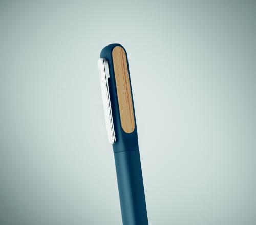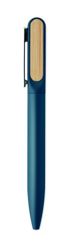 Twist ballpen with recycled aluminium barrel, recycled ABS twist part, and metal clip with bamboo detail. Blue ink.