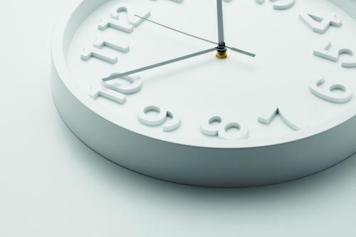 Wall clock in PP with aluminium hands and silent movement. Requires 1 AA battery (not included).