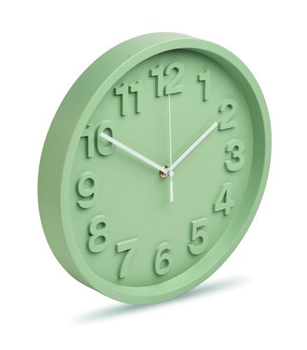 Wall clock in PP with aluminium hands and silent movement. Requires 1 AA battery (not included).