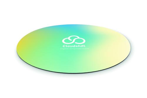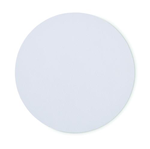 Computer mouse mat for sublimation with polyester surface and rubber on the base to prevent slipping. Diameter 21cm.