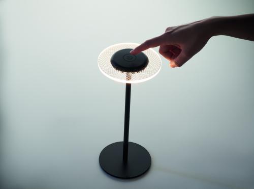 Rechargeable RGB table lamp in iron with 39 LED lights and stepless dimming. With warm or colour changing light options. Built-in 2000mAh battery lasts up to 6 hours.