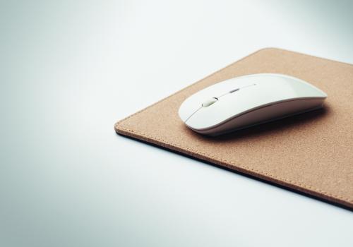 Cork mouse mat with 15W wireless charger. Output: DC 9V/1.6A. Size 23cm x20cm. Cork is 100% natural material. Due to its structural nature and surface porosity the final print result per item may have deviations.