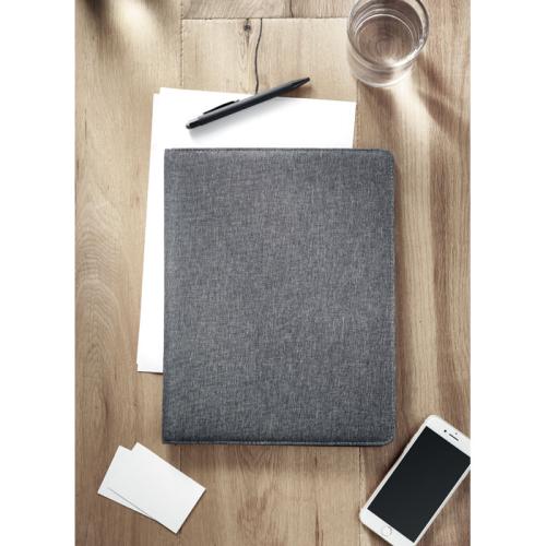 A4 conference folder with RPET cover. 20 lined bamboo paper sheets notepad. Shaped inner pocket. 2 card holders. Pen holder. Bamboo is a natural product, there may be slight variations in colour and size per item, which can affect the final decoration outcome.