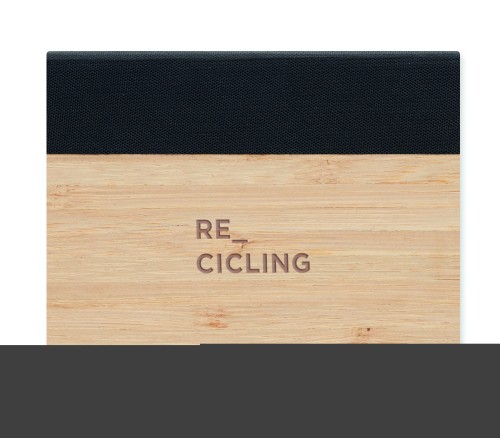 3 piece sticky note memo pad with bamboo cover. A great office essential to write down all your important meeting notes in. This way you can work organized and never forget a deadline. It has large and medium yellow sticky note pads and 5 assorted colour page markers. The bamboo cover gives the note pad a natural look. Bamboo is a natural product, there may be slight variations in colour and size per item, which can affect the final decoration outcome. Size 8x10,5 cm. FSC®-certified | FSC MIX CREDIT, P7.7, FSC-C213206