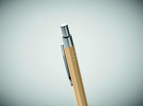 Push button ball pen in recycled aluminium. Blue ink.