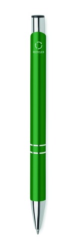 Push button ball pen in recycled aluminium. Blue ink.